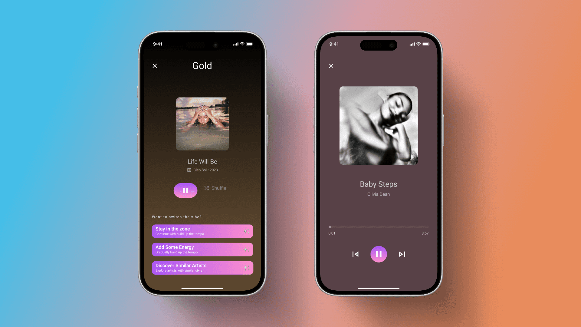 Final screens reflecting tested hierarchy, reduced cognitive load, and a more guided listening experience.