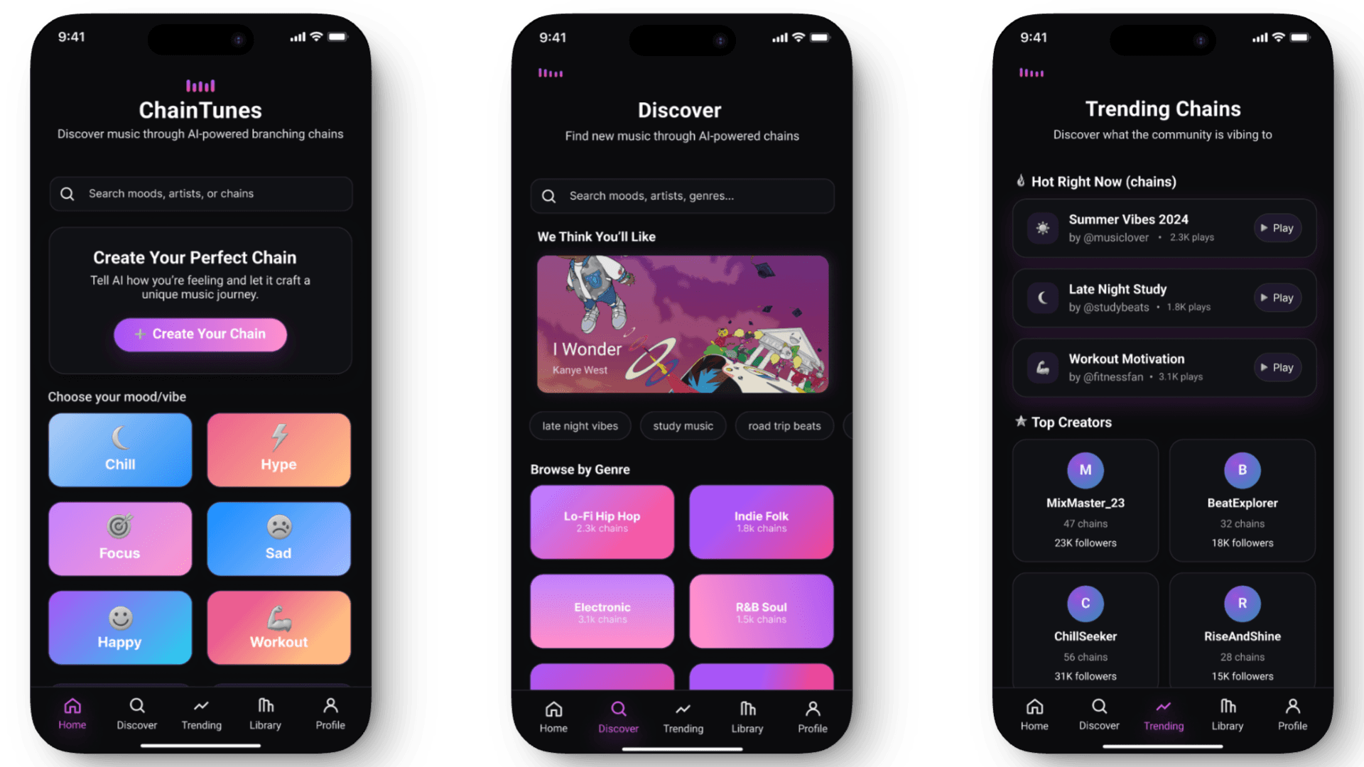 ChainTunes is an AI-powered iOS music discovery concept that turns passive listening into an interactive experience through branching “chains” and explainable recommendations.